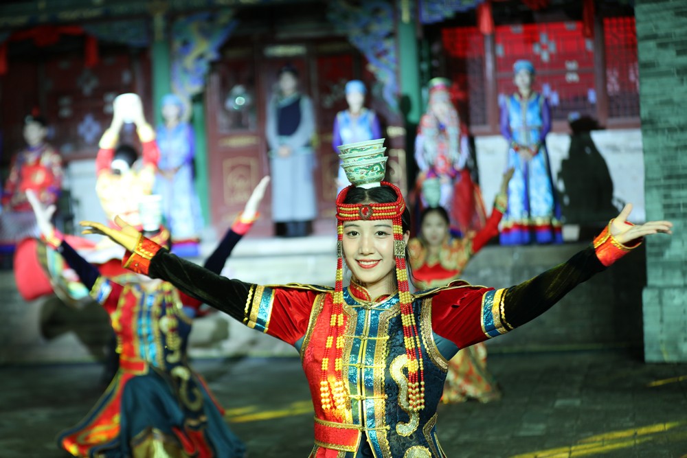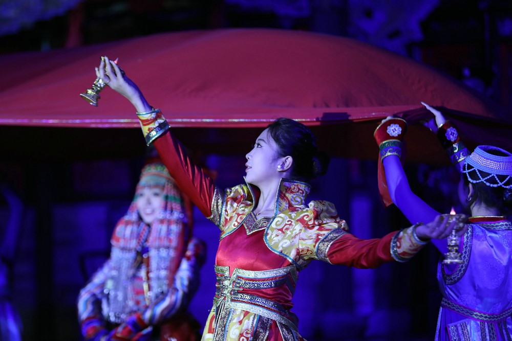 該劇將郡王府作為舞臺,以立體場景為襯托,將鄂爾多斯婚禮等融入其中,頂碗舞、筷子舞、酒盅舞等舞蹈形式穿插,精妙的設計、精彩的舞蹈和跌宕的劇情,既再現(xiàn)了歷史,也展現(xiàn)了郡王府悠久的歷史文化以及伊金霍洛旗豐富的文旅資源和獨特的文化魅力。