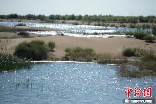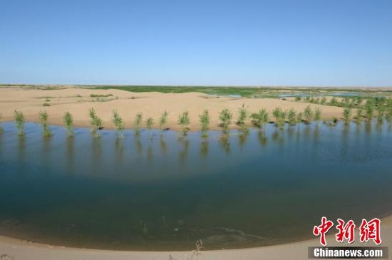 7月24日,引自黃河的凌水讓沙漠上充滿生機。據悉,中國第七大沙漠--庫布齊沙漠所處的杭錦旗境內,每年過境水量310億立方米,當地一年三分一的時間都是凌汛期。政府因地制宜,2016年投資建成分凌引水渠、生態(tài)圍堤等設施,自2016年至2018年黃河凌汛期以來,累計分凌5千余萬立方米,形成約36平方公里保護濕地的面積,原來為沙漠的地貌逐漸變成綠洲,農牧民開始發(fā)展野牛養(yǎng)殖與農家樂旅游業(yè)。中新社記者劉文華攝