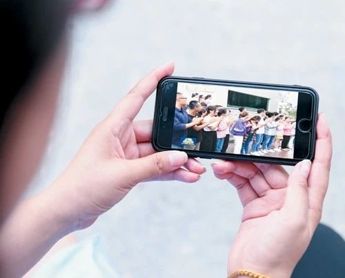 市民們用手機(jī)及時觀看新聞聯(lián)播。
