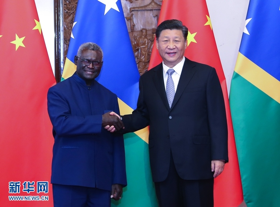 10月9日,國家主席習近平在北京釣魚臺國賓館會見所羅門群島總理索加瓦雷。