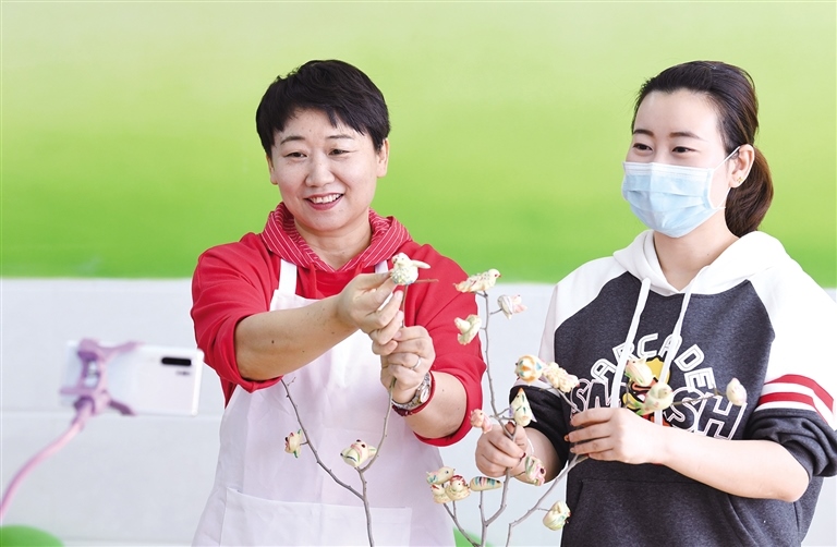 4月3日,呼和浩特市玉泉區(qū)通順街小學(xué)老師在直播中展示面塑“寒燕兒”的制作技藝。清明節(jié)將至,通順街小學(xué)開展“清明時(shí)節(jié)寒燕兒炫彩”線上傳統(tǒng)文化課活動(dòng)。通過(guò)視頻直播、錄播等形式,向同學(xué)們介紹當(dāng)?shù)厍迕鲿r(shí)節(jié)特色面塑“寒燕兒”的制作技藝,讓孩子們了解清明節(jié)習(xí)俗,感受傳統(tǒng)文化魅力。據(jù)悉,北方民間每到清明節(jié)來(lái)臨的時(shí)候,家家戶戶都有蒸面塑“寒燕兒”的習(xí)俗。內(nèi)蒙古日?qǐng)?bào)融媒體記者 王磊 攝