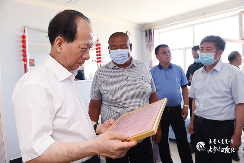7月14日,自治區(qū)黨委書(shū)記、人大常委會(huì)主任石泰峰深入烏蘭察布市四子王旗吉生太鎮(zhèn)糖坊卜子行政村下坤兌新村,走訪貧困戶(hù)了解生產(chǎn)生活情況。內(nèi)蒙古日?qǐng)?bào)社融媒體記者 袁永紅 攝