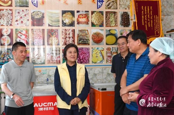 我區(qū)民族特色奶制品具有很大的發(fā)展?jié)摿?。在新巴爾虎左旗娜仁薩其爾巴爾虎奶食品加工基地,布小林考察產(chǎn)品種類、工藝流程、安全檢測、包裝銷售等方面的情況。得知基地被認(rèn)定為奶制品技藝培訓(xùn)教室和扶貧車間、主要安置建檔立卡貧困戶就業(yè)時,她對此給予肯定,鼓勵基地進(jìn)一步發(fā)揮引領(lǐng)帶動作用,積極探索特色化、標(biāo)準(zhǔn)化、品牌化發(fā)展路子,幫助更多貧困群眾增收致富。
