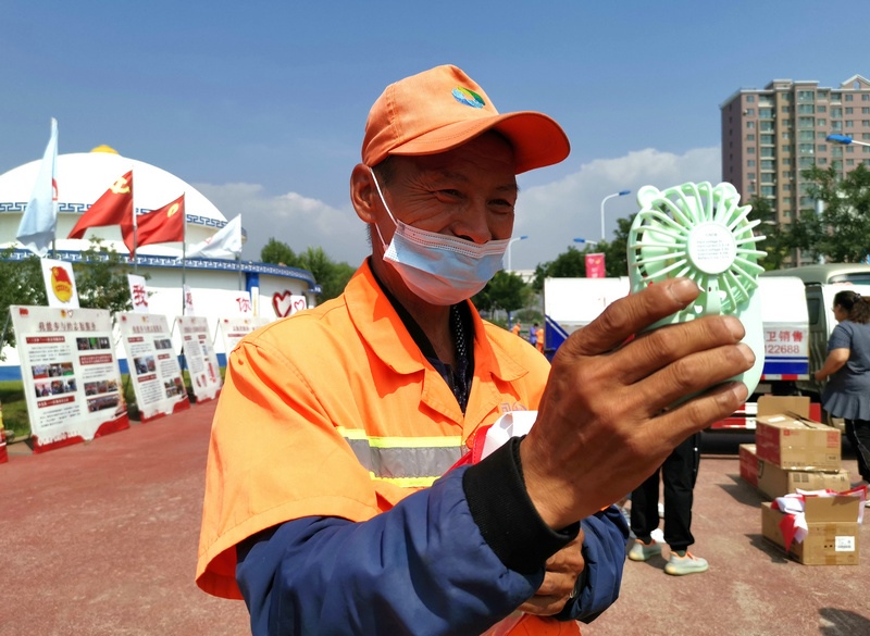 “這么熱的天氣,能給我們環(huán)衛(wèi)工人送來清涼包,太感謝了!”在呼和浩特回民區(qū)成吉思汗大街環(huán)衛(wèi)所做環(huán)衛(wèi)工作的張有義難掩高興的心情,立即打開清涼包中的小電風扇,給自己先“清涼”一下。除了風扇外,還有可在酷暑夏日為環(huán)衛(wèi)工人們提神醒腦的清涼油,以及可為他們在勞動后第一時間保持手部衛(wèi)生的免洗洗手液,這些貼心的隨身用品無疑是在這個季節(jié)里對他們健康的最好關(guān)愛。