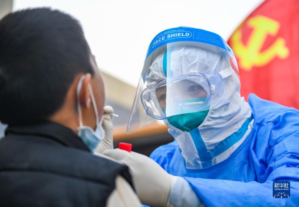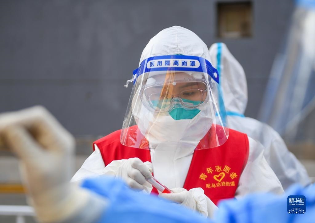 連日來,在呼和浩特市的戰(zhàn)“疫”路上,志愿者沖鋒在前。他們協(xié)助開展核酸檢測(cè)、社區(qū)管控等工作,為筑牢防疫安全屏障貢獻(xiàn)自己的力量。(新華社記者 彭源攝)