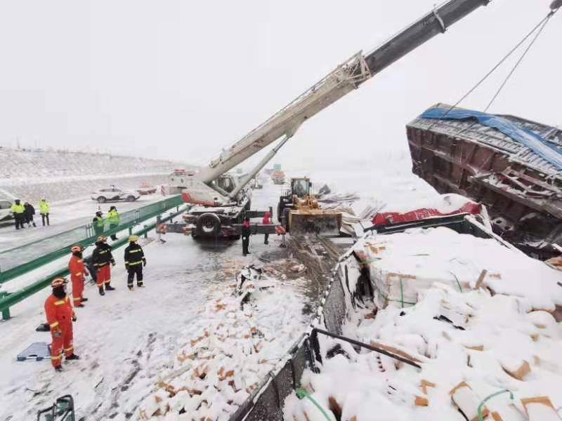 記者當晚從內(nèi)蒙古自治區(qū)應急管理廳以及烏海市有關(guān)部門了解到,事發(fā)時,1輛重型半掛牽引車因雨雪天氣道路結(jié)冰發(fā)生側(cè)滑,致使后方行駛的另一輛重型半掛車采取措施不及發(fā)生碰撞,繼而引發(fā)多車連環(huán)相撞,致3死2傷。事故發(fā)生后,烏海市公安、消防、交警等部門立即趕赴現(xiàn)場展開救援工作。由于部分大貨車車頭后部天然氣儲罐破損發(fā)生泄漏,給現(xiàn)場處置救援帶來一定難度。消防部門通過破拆救援,成功將傷者抬至安全地帶,移交給現(xiàn)場120醫(yī)護人員緊急送往就近醫(yī)院治療。截至當日24時許,事故現(xiàn)場清理完畢。