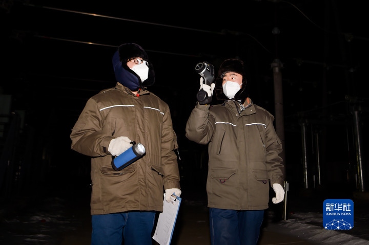 國(guó)家電網(wǎng)滿洲里220千伏變電站位于滿洲里市西郊,負(fù)責(zé)給全市三分之一的用戶供電。夜越來(lái)越深,“95后”值班員王東亞和同事拿著測(cè)溫設(shè)備,開始對(duì)戶外輸變電設(shè)備進(jìn)行檢查。他們深一腳淺一腳地踩著雪,仔細(xì)檢查高壓開關(guān)外的伴熱帶是否正常工作?!拔覀兣吕?,設(shè)備更怕冷,天越冷越要加強(qiáng)巡視?!蓖鯑|亞說(shuō)。