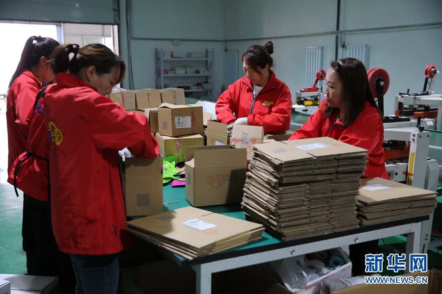 在賽罕區(qū)金河鎮(zhèn)曙光村“正北方云倉”電商平臺打包車間,工作人員正在分貨裝箱。新華網(wǎng) 石毅 攝