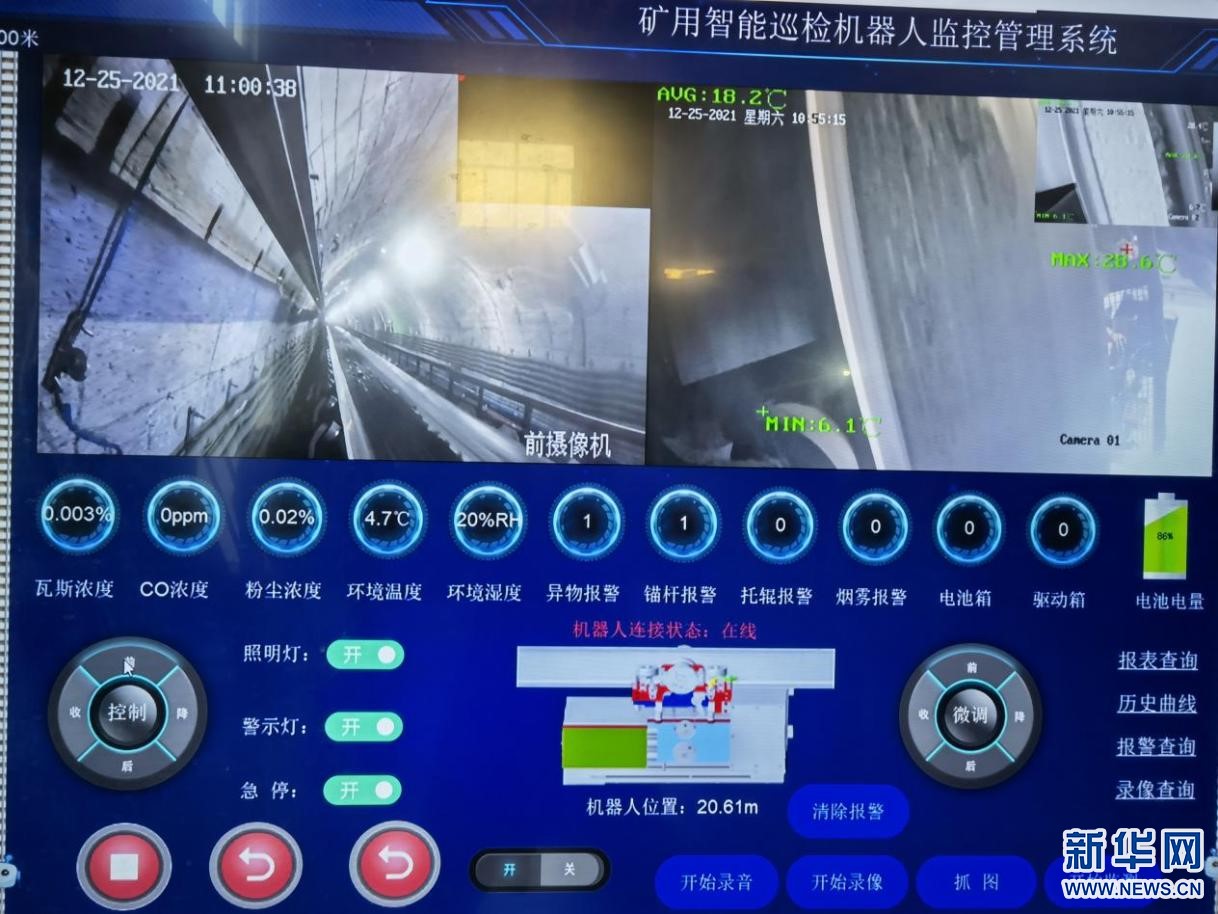 25日,在鄂爾多斯市麻地梁煤礦的輸煤傳送帶上,一臺礦用AI(人工智能機(jī)器人)“打工人”身著藍(lán)色“工衣”,行進(jìn)在運(yùn)輸皮帶上,它依靠一雙10CM大的“眼睛”,敏銳觀察著皮帶上源源不斷傳送的煤炭,并檢查異物。它身上安裝了高精度傳感器,可以實(shí)時(shí)將瓦斯、二氧化碳、粉塵濃度傳回麻地梁煤礦智能調(diào)度集控中心。