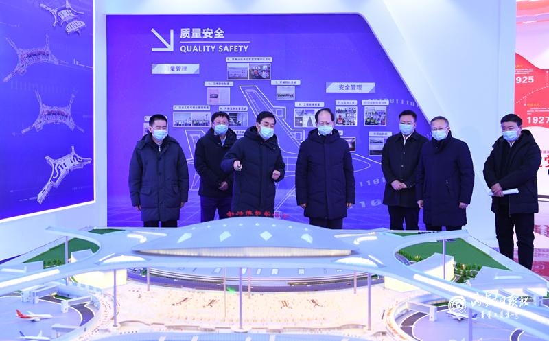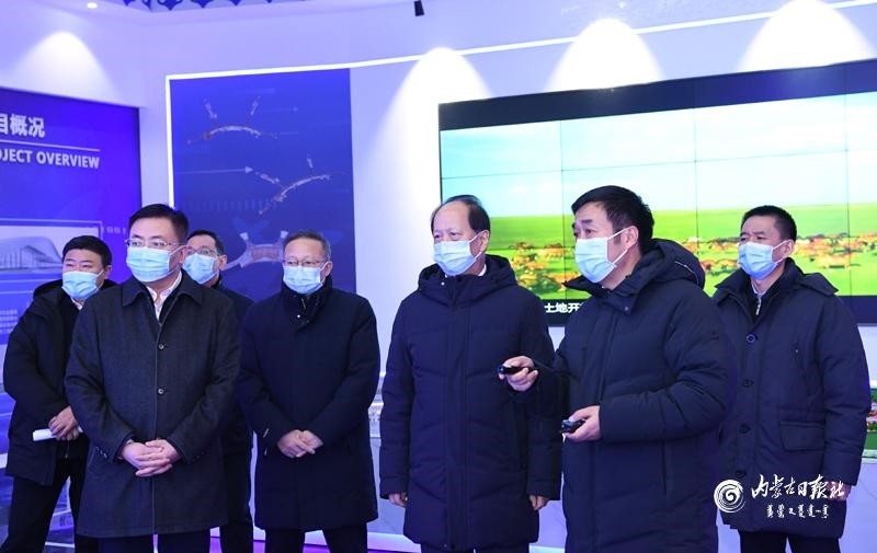 1月18日下午,自治區(qū)黨委書(shū)記、人大常委會(huì)主任石泰峰在呼和浩特新機(jī)場(chǎng)智慧展廳,聽(tīng)取新機(jī)場(chǎng)主體建設(shè)情況介紹。內(nèi)蒙古日?qǐng)?bào)社融媒體記者 袁永紅 攝