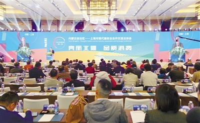 自治區(qū)商務廳在上海舉辦“內蒙古自治區(qū)—上海市現(xiàn)代服務業(yè)合作交流洽談會”。內蒙古日報社融媒體記者高慧攝