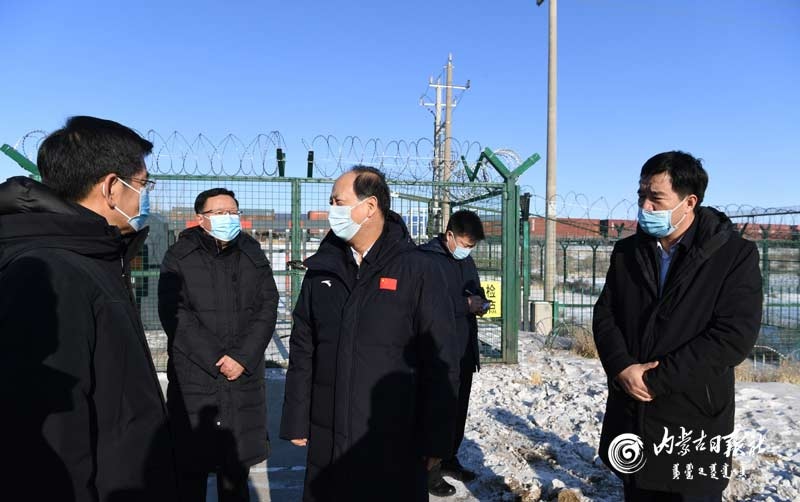2月4日,自治區(qū)黨委書(shū)記、人大常委會(huì)主任石泰峰來(lái)到二連浩特市環(huán)宇物流園區(qū),了解疫情防控和作業(yè)運(yùn)行情況。內(nèi)蒙古日?qǐng)?bào)社融媒體記者袁永紅攝