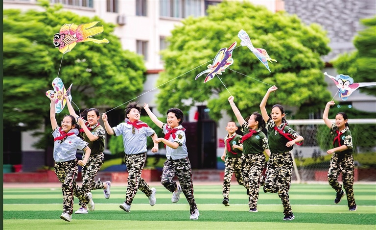 呼和浩特市玉泉區(qū)五塔寺東街小學(xué)學(xué)生放飛彩繪風(fēng)箏。內(nèi)蒙古日?qǐng)?bào)社融媒體記者王磊攝