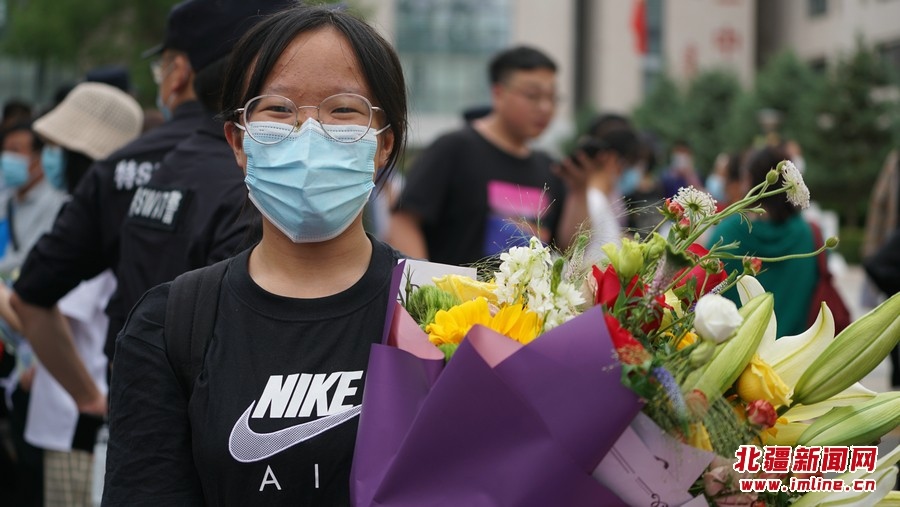 6月8日下午5時(shí)30分,呼和浩特市第二中學(xué)考點(diǎn)外站滿了考生親屬、朋友。他們或手捧鮮花、或拉上慶祝橫幅,等待考生們“凱旋”。