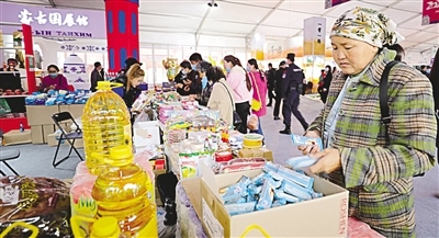 滿洲里互貿(mào)區(qū)的商品吸引附近的牧民前來(lái)購(gòu)買。 記者 李新軍 攝