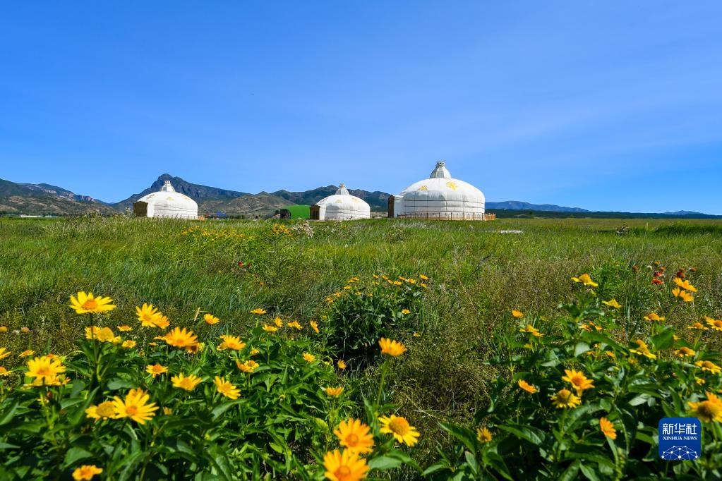 初秋的敕勒川草原,花香、草香撲面而來(lái),綠草之間泛著淡淡鵝黃,與白、紅、紫等各色小花繪成一幅層次鮮明的風(fēng)景畫(huà)。