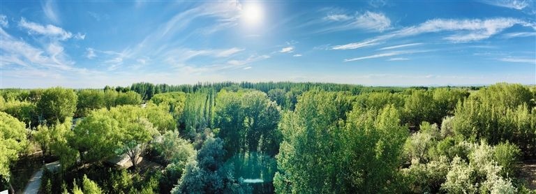 初夏時節(jié),位于巴彥淖爾市臨河區(qū)烏蘭圖克鎮(zhèn)的國營新華林場內(nèi)綠樹掩映、鳥鳴聲聲,鄰近的湖泊波光粼粼,微風(fēng)吹過,溫潤清涼。