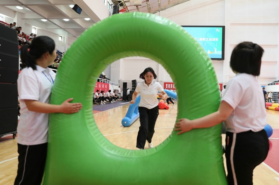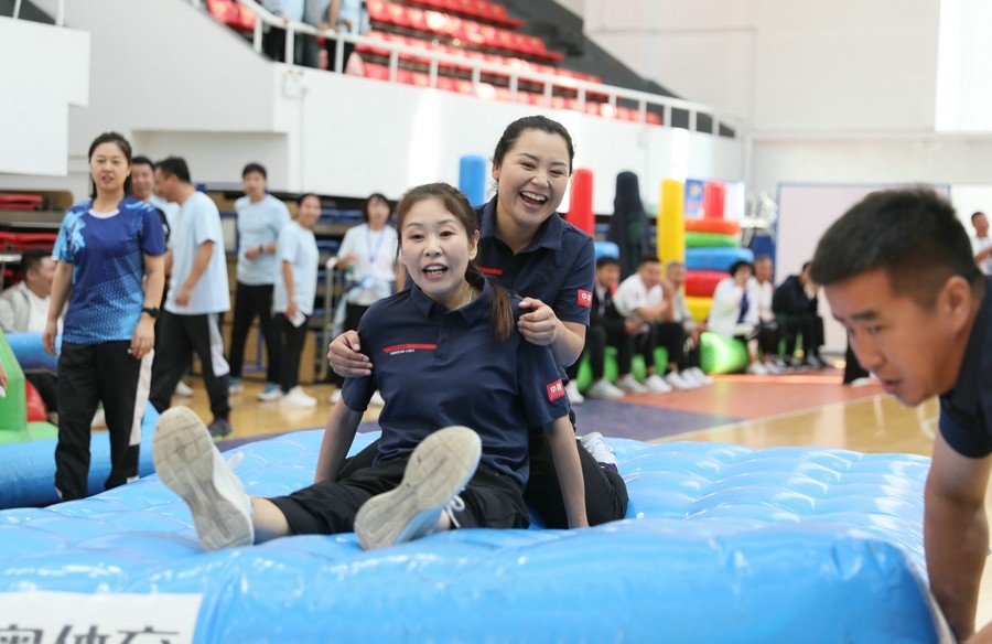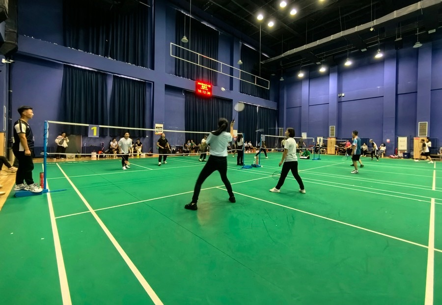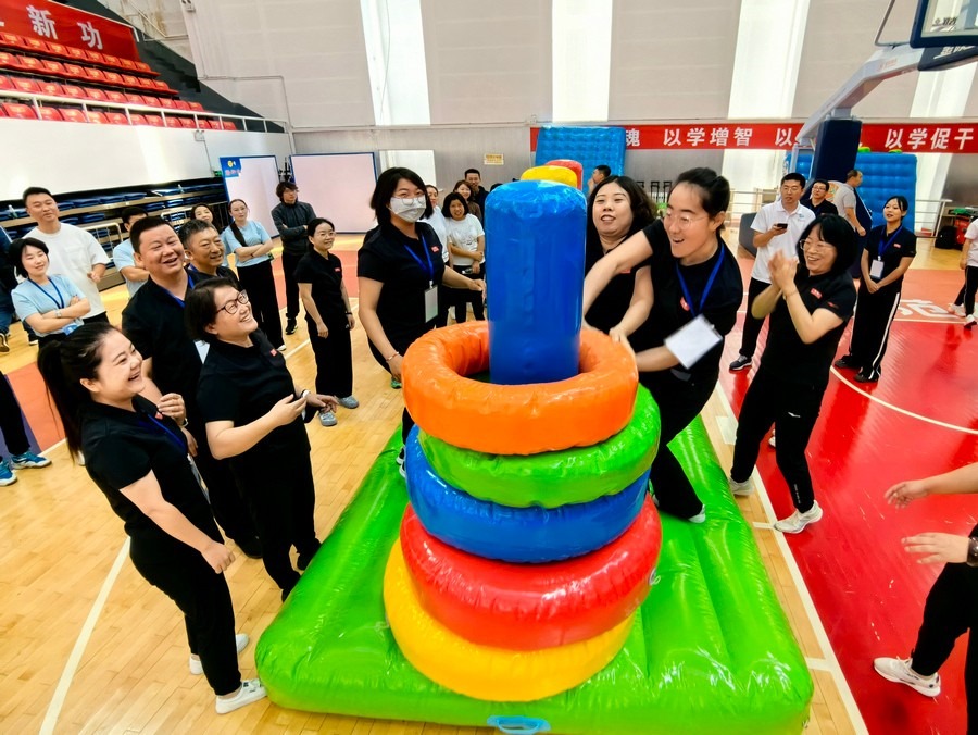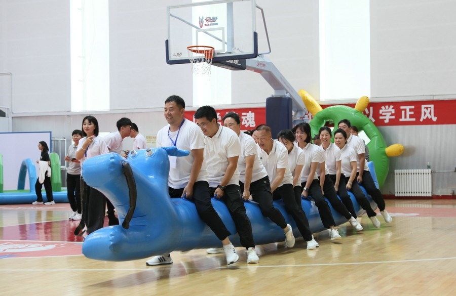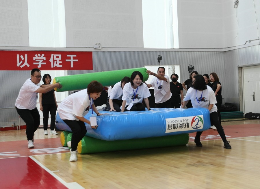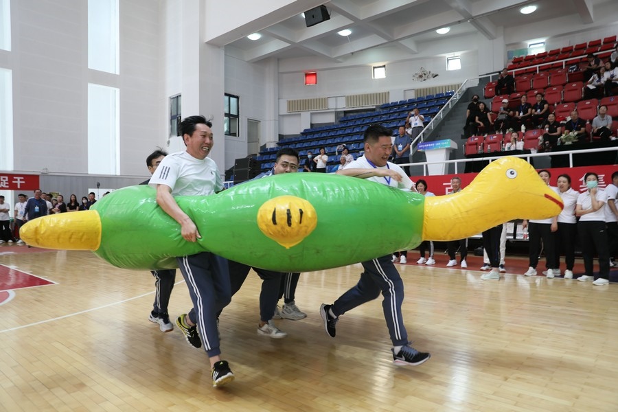 在隨后進(jìn)行的趣味運動會中,依次進(jìn)行了“陸地冰壺”“龜兔賽跑”“漢諾塔”等比賽項目。而在此前一天,羽毛球等項目也已開賽。賽場上,運動員們團(tuán)結(jié)一心,奮力拼搏。觀眾席上,“最強(qiáng)氣氛組”組成強(qiáng)大的啦啦隊,為參賽選手們吶喊助威、加油鼓勁,共同凝聚團(tuán)隊的精神,一起分享比賽的快樂。