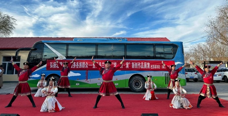 弘揚北疆文化  服務各族群眾——全區(qū)烏蘭牧騎“學·創(chuàng)·演”新創(chuàng)作品展演呼和浩特賽罕區(qū)敕勒川路街道東古樓村活動現場