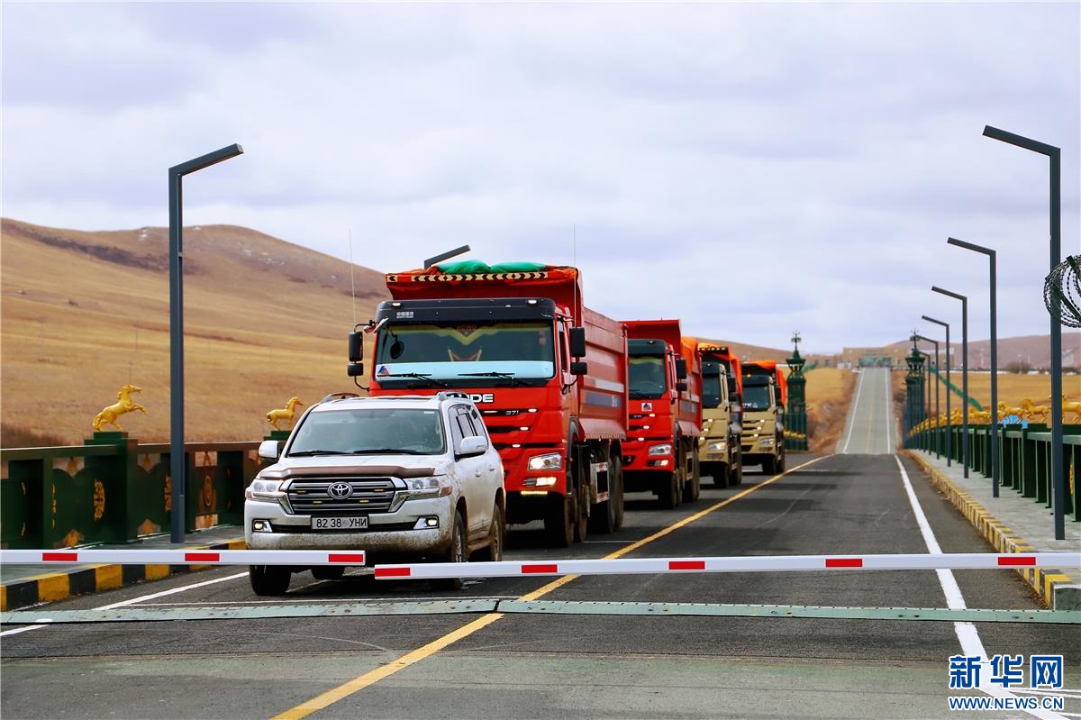 大卡車駛過珠恩嘎達布其口岸。資料圖 ??