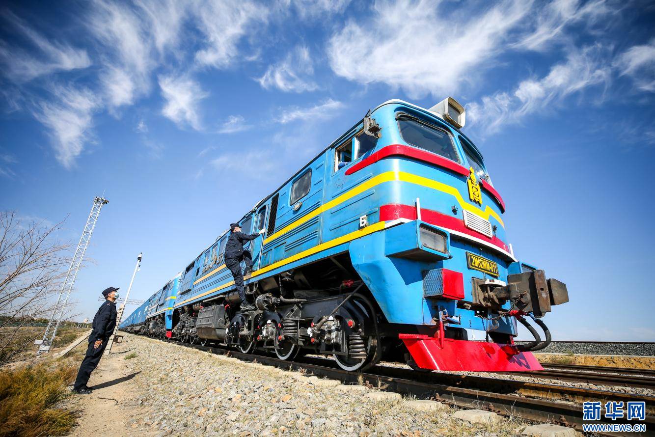 中歐班列駛出滿洲里國門。新華網(wǎng)發(fā) (李新軍 攝)