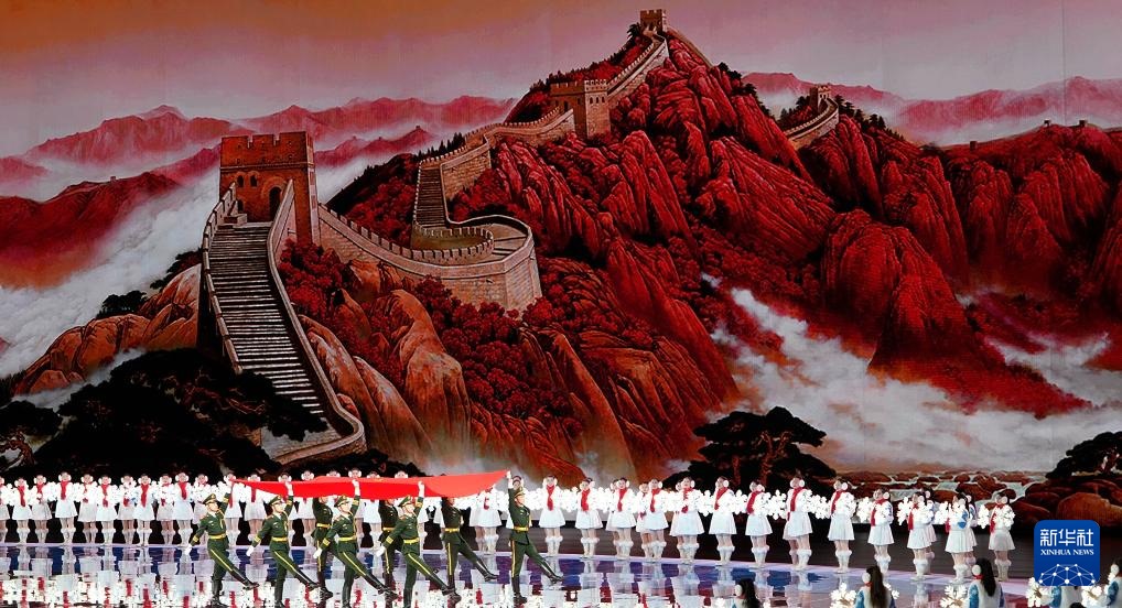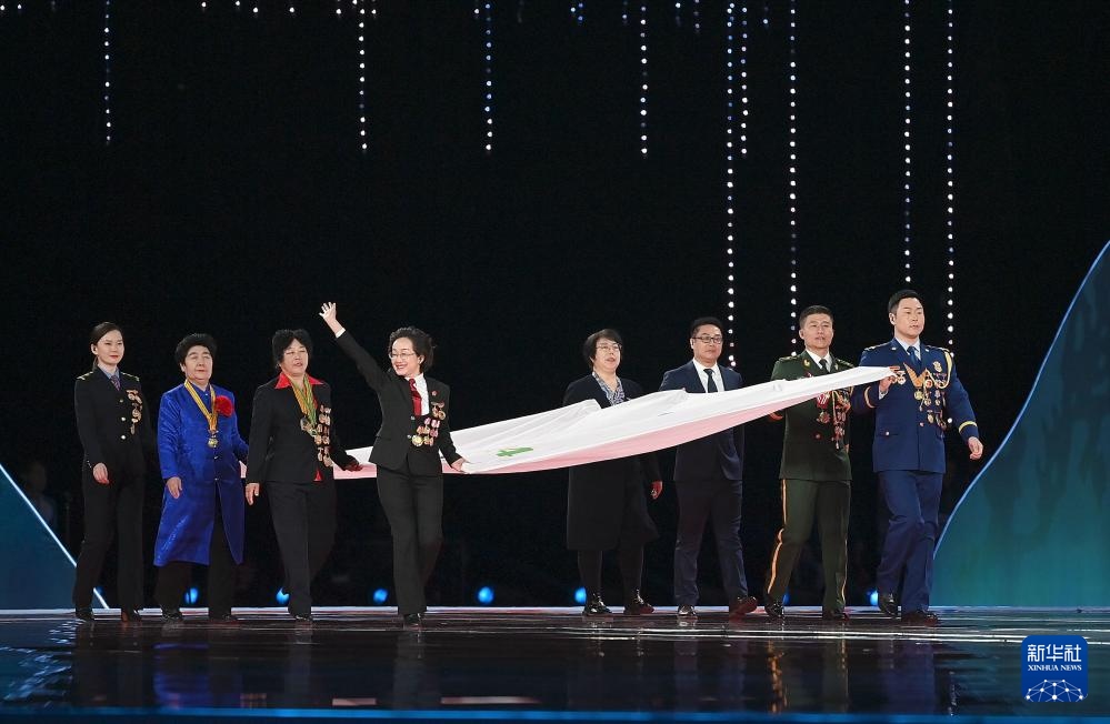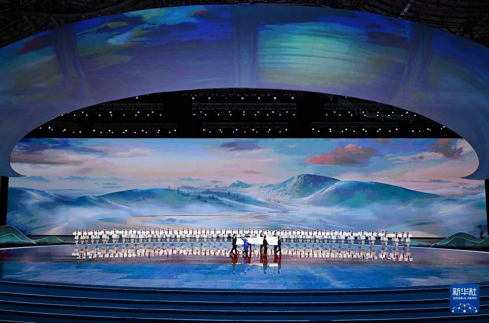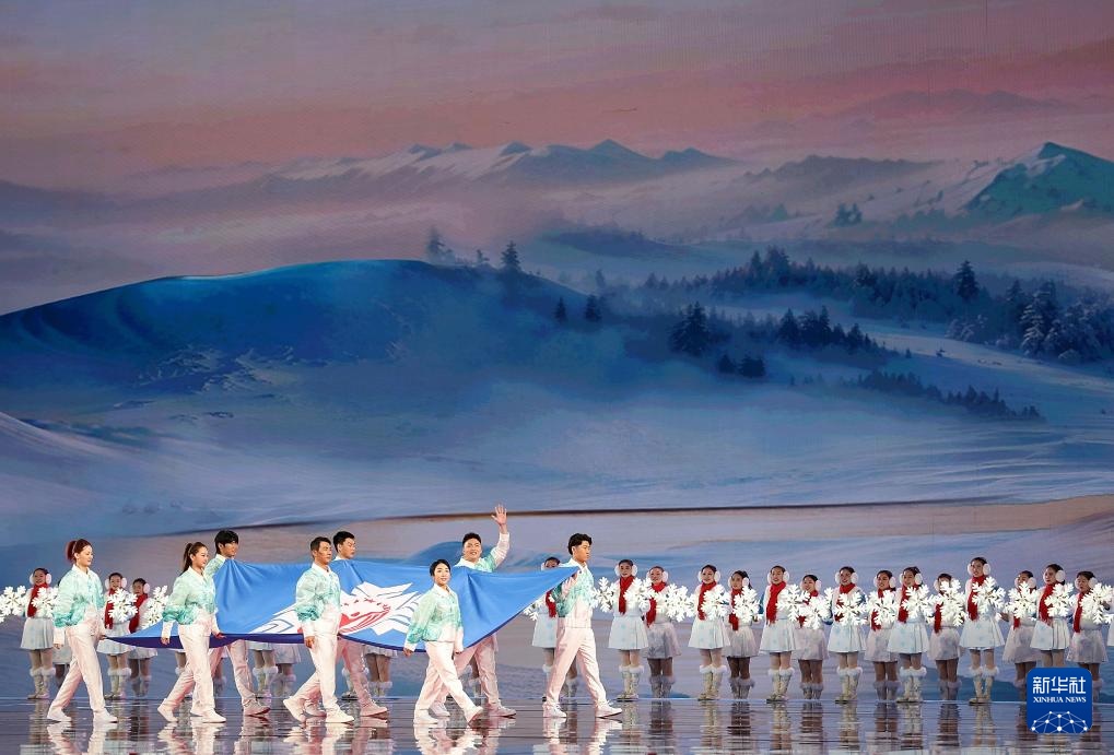 ??2月17日,中華人民共和國第十四屆冬季運動會會旗在開幕式上入場。新華社記者 黃偉 攝