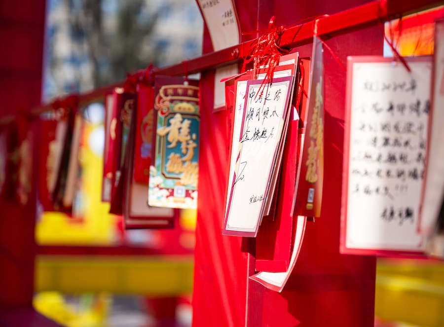 “祝福祖國:國泰平安,風調(diào)雨順,祝福自己:生意興隆,財源滾滾”“中考之路,順風順水,金榜題名”“平安吉祥,龍年順遂”“暴富”……