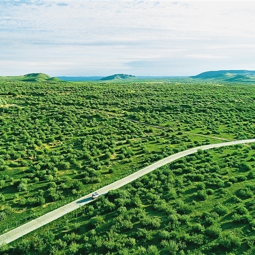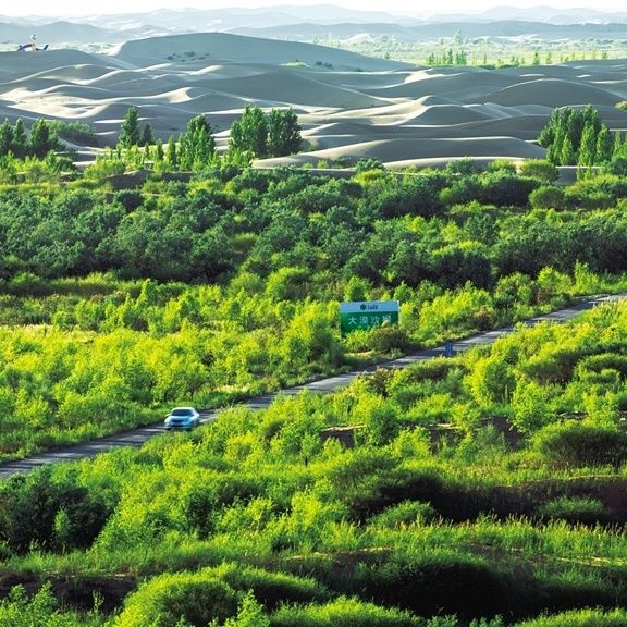 以路治沙模式:從2003年至今,赤峰市翁牛特旗先后開通13條穿沙公路,五橫八縱將翁牛特旗境內的科爾沁沙地切割成若干生態(tài)治理區(qū),不僅方便治沙物資、治理措施進入沙漠腹地,也打通了沙區(qū)發(fā)展的通道。