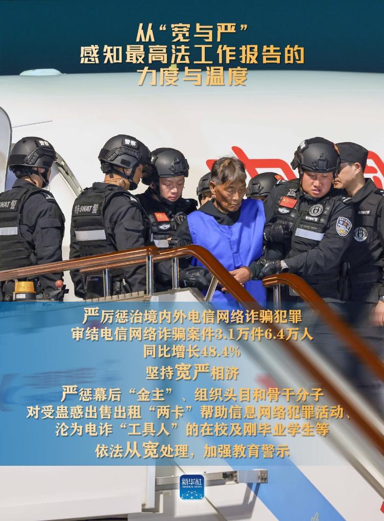 新華社北京3月9日電(記者高潔、馬知遙、袁秋岳)3月8日,最高人民法院工作報(bào)告提請(qǐng)十四屆全國(guó)人大二次會(huì)議審議。報(bào)告中列舉了不少案例,有的案件從嚴(yán)從重判決,有的從寬或無罪判決。讓我們從“寬與嚴(yán)”感知報(bào)告的力度與溫度。