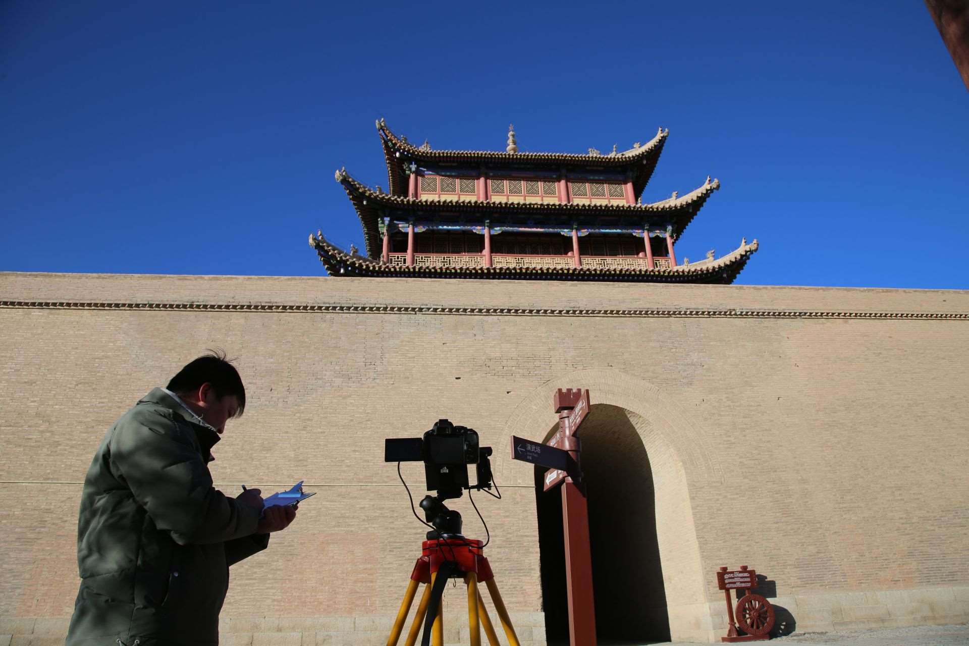 1月29日,嘉峪關(guān)絲路(長城)文化研究院文化遺產(chǎn)監(jiān)測中心工作人員高商,正在對柔遠(yuǎn)樓城臺裂縫進(jìn)行定期監(jiān)測。戈壁上的風(fēng)很“硬氣”,高商寫字的手有點(diǎn)不聽使喚:“當(dāng)長城醫(yī)生可不能偷懶,‘定期查體’都要做得仔仔細(xì)細(xì),這樣才能及時‘防病治病’。”同事在身后悄悄按下快門,高商渾然不覺。