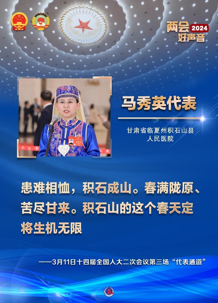 11日下午,十四屆全國(guó)人大二次會(huì)議第三場(chǎng)“代表通道”在人民大會(huì)堂中央大廳北側(cè)舉行。扎根基層、微光如炬,6位全國(guó)人大代表分享一線故事,一句句真摯的話語(yǔ),凝聚成奮進(jìn)的旋律,在春日里回響。