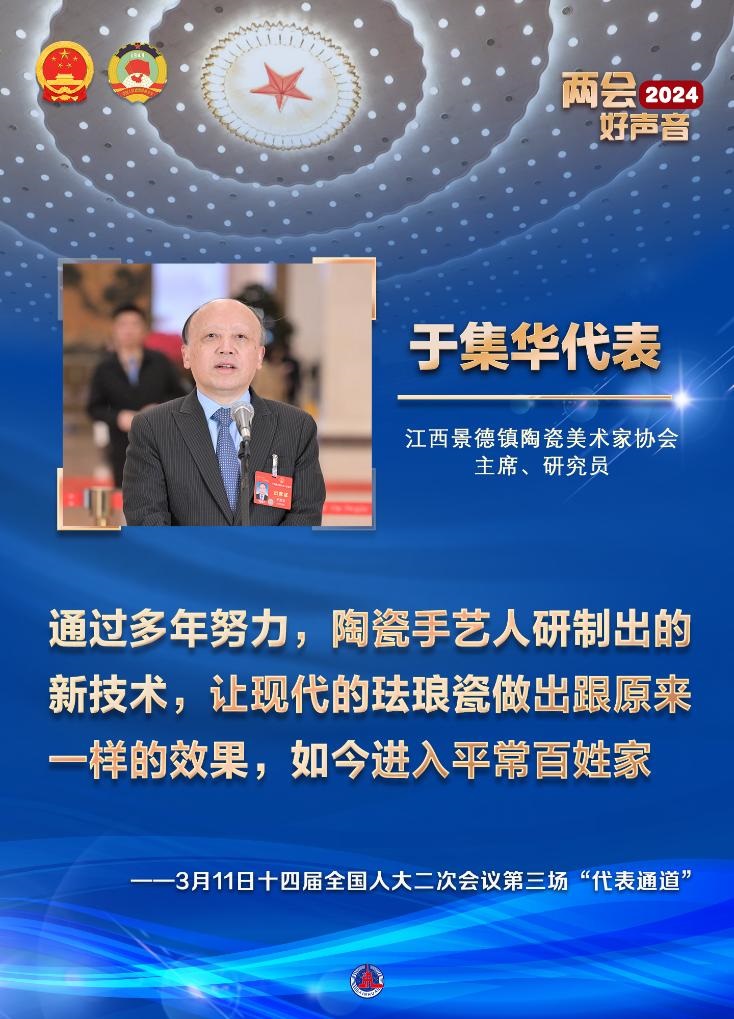 江西景德鎮(zhèn)陶瓷美術(shù)家協(xié)會(huì)主席、研究員于集華代表說(shuō),通過(guò)多年努力,陶瓷手藝人研制出的新技術(shù),讓現(xiàn)代的琺瑯瓷做出跟原來(lái)一樣的效果,如今進(jìn)入平常百姓家。