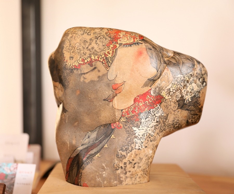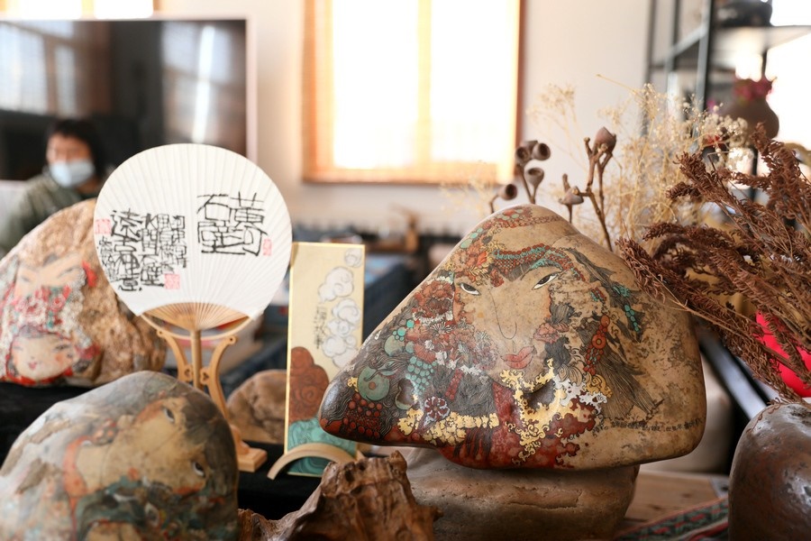 自2016年起,魯婷開(kāi)始用黃河石畫(huà)的形式,講述母親河的故事。2018年,魯婷在西行客棧建立了自己的工作室,向社會(huì)各界免費(fèi)開(kāi)放,用黃河石彩繪的方式,為北疆文化注入新的思想和內(nèi)涵。