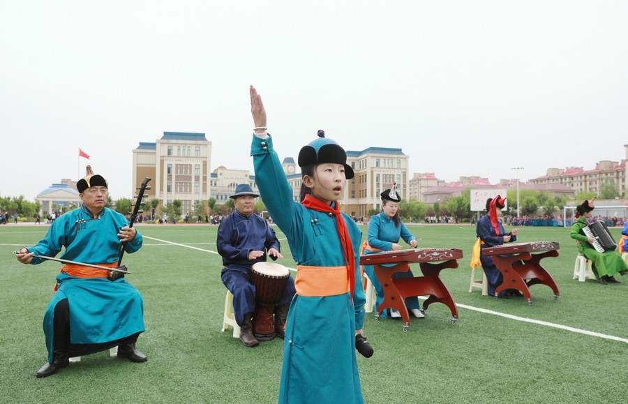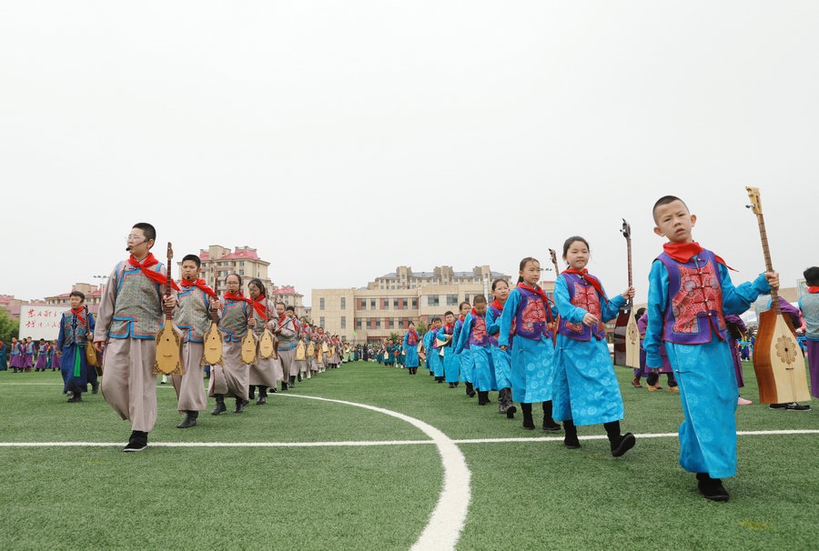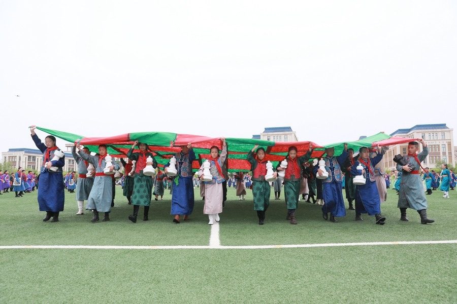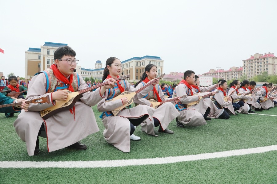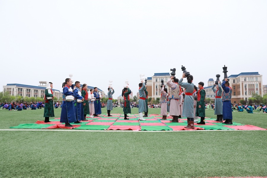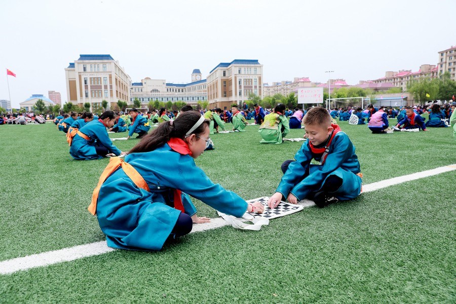 “今天參加4個‘千人文化’特色課程感到非常高興和開心。這4個課程讓我們的文化素養(yǎng)得到質(zhì)的提升,愉悅了身心?!蔽迥昙?25班的哈斯寶勒爾剛剛參加完特色課程展示。哈斯寶勒爾表示,這4個課程,比如玩象棋的話,可以提升自己的思維邏輯,讓自己的思路更加清晰,能夠提升學習成績;練習筷子舞,可以讓我們的心情變得更加愉悅,通過練習跳舞,讓我們身體的柔韌性更強;唱江格爾,能鍛煉我們的唱歌能力,還能讓我們把非物質(zhì)文化遺產(chǎn)傳承下去;踢足球可以鍛煉我們的體能。