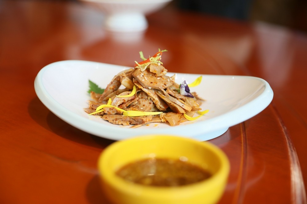 首次亮相的羊雜宴席分涼菜、熱菜、湯羹、主食等共18個(gè)菜品,包括櫻桃松露羊肝、扎蒙花拌耳舌、香辣手撕羊心、王爺精片蹄花、胡麻鹽干山尾、養(yǎng)生羊腦藜麥粥 、羊隨布拉塔番茄、草原風(fēng)味毛血旺 、松茸焗羊雜煲、茶香伴侶雙寶 、黃柿子肚絲湯 、鮮羊肝披薩餅等,而首次登上羊雜宴席的羊雜燒麥也是菜品中的一大亮點(diǎn)。伴隨著國家級烹飪大師、羊雜宴席領(lǐng)銜主廚岳俊杰的介紹,“沒想到”“好吃”之類的驚嘆成為品鑒會的高頻詞。