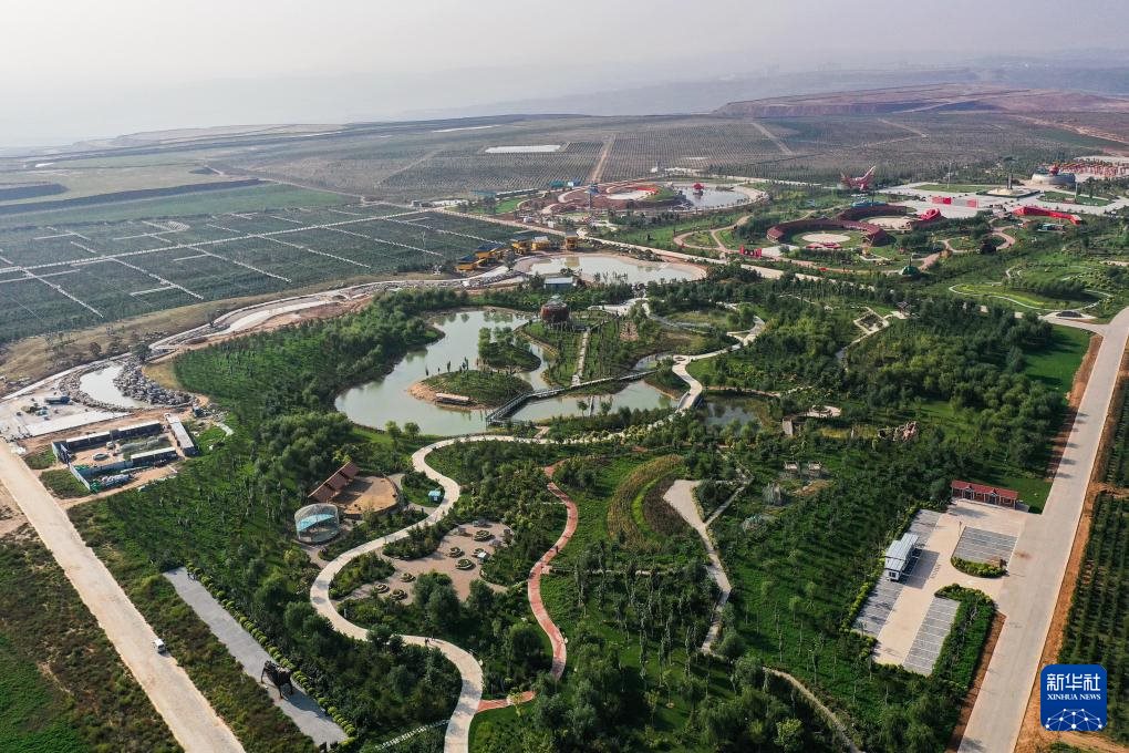 ??在位于內(nèi)蒙古鄂爾多斯市準(zhǔn)格爾旗的國(guó)家能源集團(tuán)準(zhǔn)能集團(tuán),煤礦復(fù)墾區(qū)樹(shù)木蔥蘢,已成為礦山生態(tài)旅游區(qū)(無(wú)人機(jī)照片,9月19日攝)。