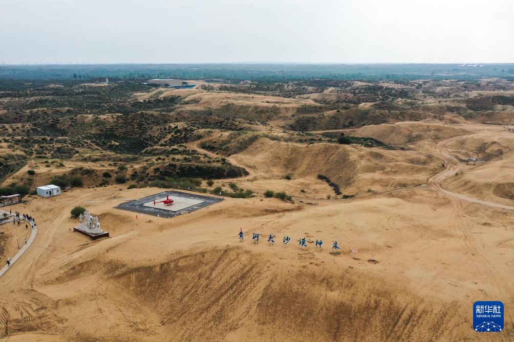 ??這是9月18日拍攝的位于鄂爾多斯市準(zhǔn)格爾旗境內(nèi)的庫(kù)布其沙漠神泉旅游區(qū)(無(wú)人機(jī)照片)。