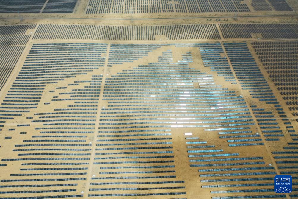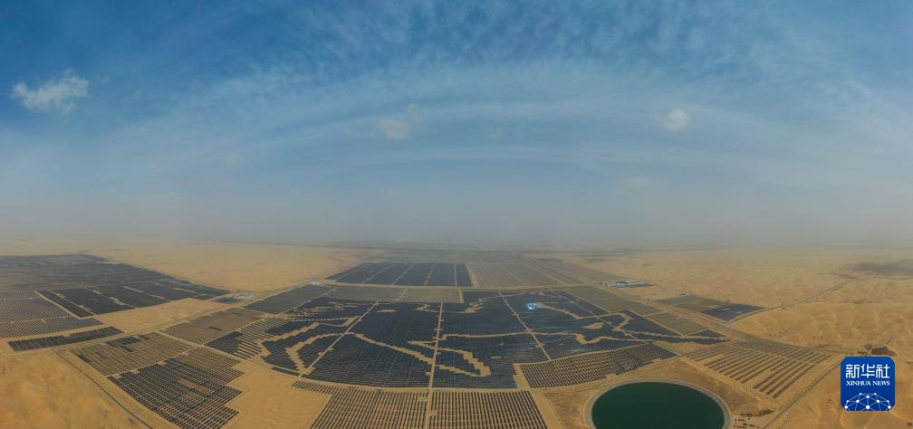 在內(nèi)蒙古自治區(qū)鄂爾多斯市境內(nèi)的庫(kù)布其沙漠里,一排排光伏板整齊地排列著,像是一幅藍(lán)色畫布在沙海中熠熠生輝。然而在過(guò)去,“黃沙遮天日,飛鳥無(wú)棲樹”是人們對(duì)這片沙海的印象。
