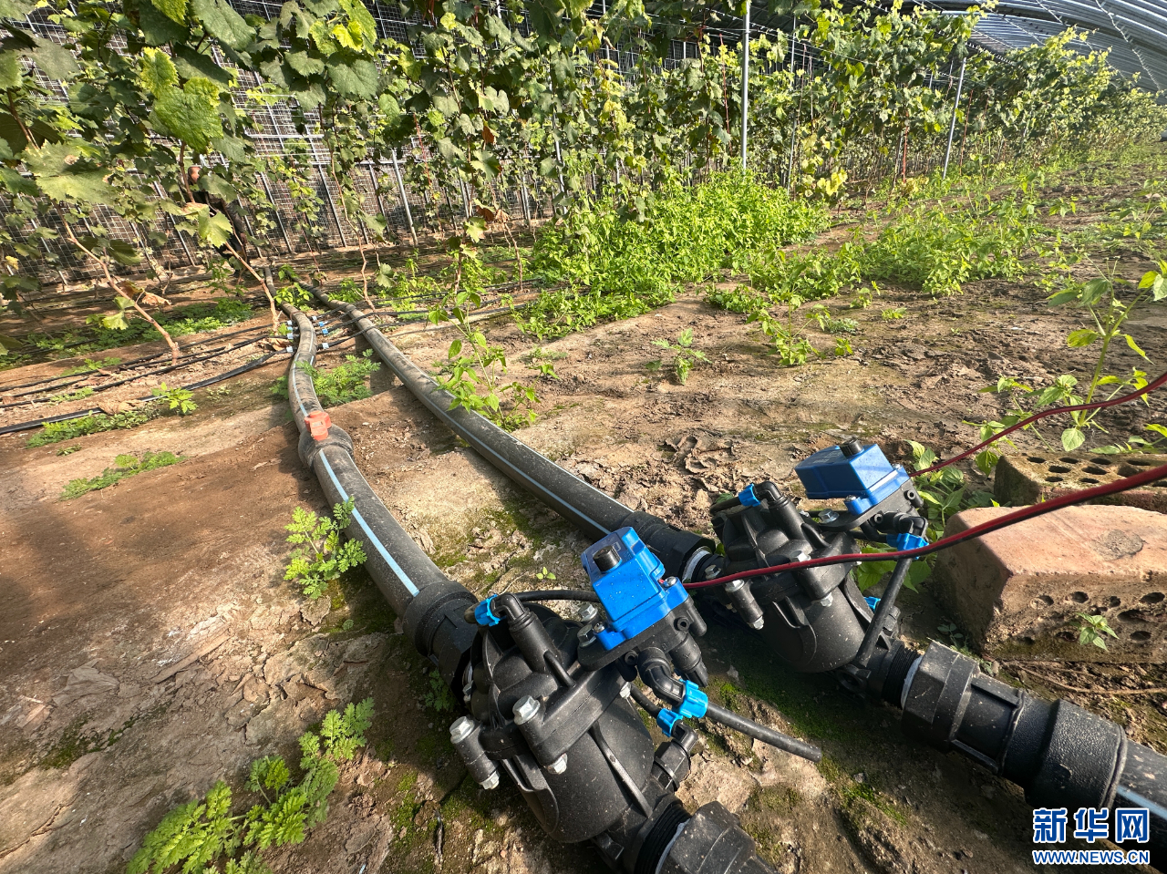 ??這里種植的葡萄個頭大、口感好、產量高,秘訣在于有一套集水肥一體、二氧化碳氣肥、智能溫控等功能于一體的智慧農業(yè)種植管控系統(tǒng)。