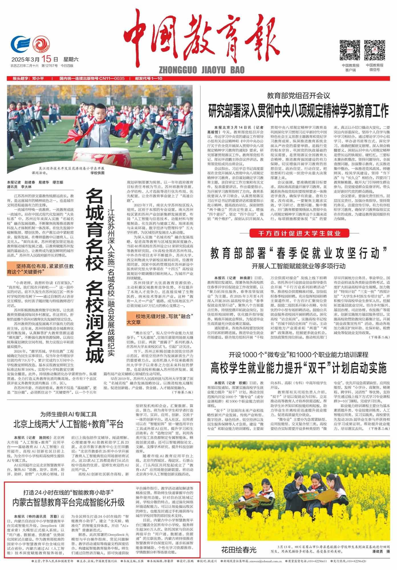 2025年3月15日,《中國教育報》第1版刊發(fā)題為《打造24小時在線的“智能教育小助手”內(nèi)蒙古智慧教育平臺完成智能化升級》的文章,報道了近日,內(nèi)蒙古自治區(qū)中小學(xué)智慧教育平臺完成智能化升級,DeepSeek(深度求索)大模型正式接入系統(tǒng),內(nèi)蒙古通過AI(人工智能)技術(shù)深度賦能教育服務(wù)場景,為全區(qū)師生打造24小時在線的“智能教育小助手”,建立“全天候、精準化”的智能支持體系,開啟“AI+教育”普惠新范式。