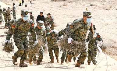2025年5月6日《中國國防報》第1版刊發(fā)了《內(nèi)蒙古巴彥淖爾軍分區(qū)發(fā)動民兵參與烏蘭布和沙漠治沙攻堅戰(zhàn) 植樹造林戰(zhàn)“黃龍”》的文章,報道了連日來,內(nèi)蒙古巴彥淖爾市民兵到烏蘭布和沙漠植樹造林。為植樹造林鎖住“黃龍”,當?shù)剀娒衤?lián)手筑起了一道48公里長的綠色屏障。據(jù)氣象部門數(shù)據(jù)顯示,近年來,當?shù)厣硥m暴、干熱風、浮塵天氣年平均日數(shù)顯著下降。