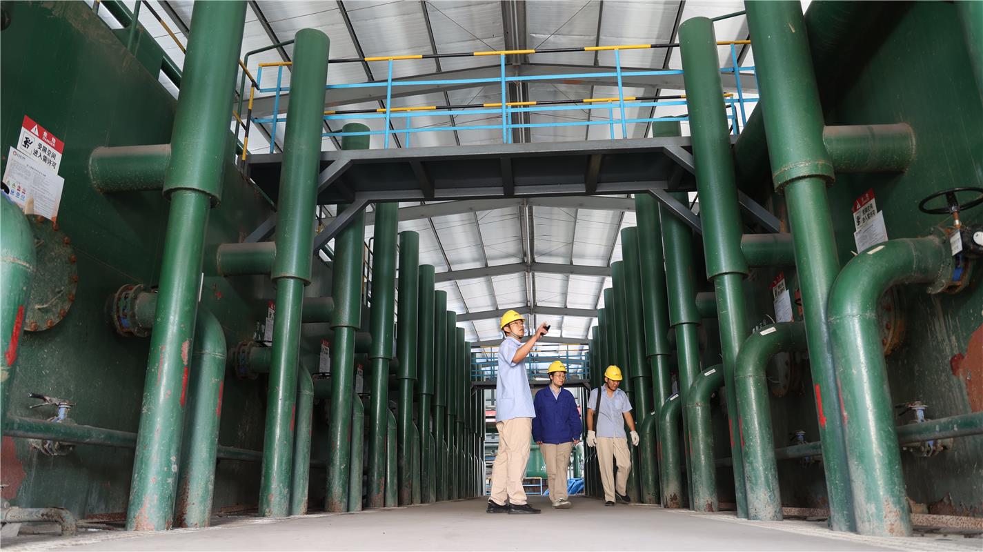 通遼金煤化工有限公司工作人員檢查凈水設(shè)備的運轉(zhuǎn)情況。