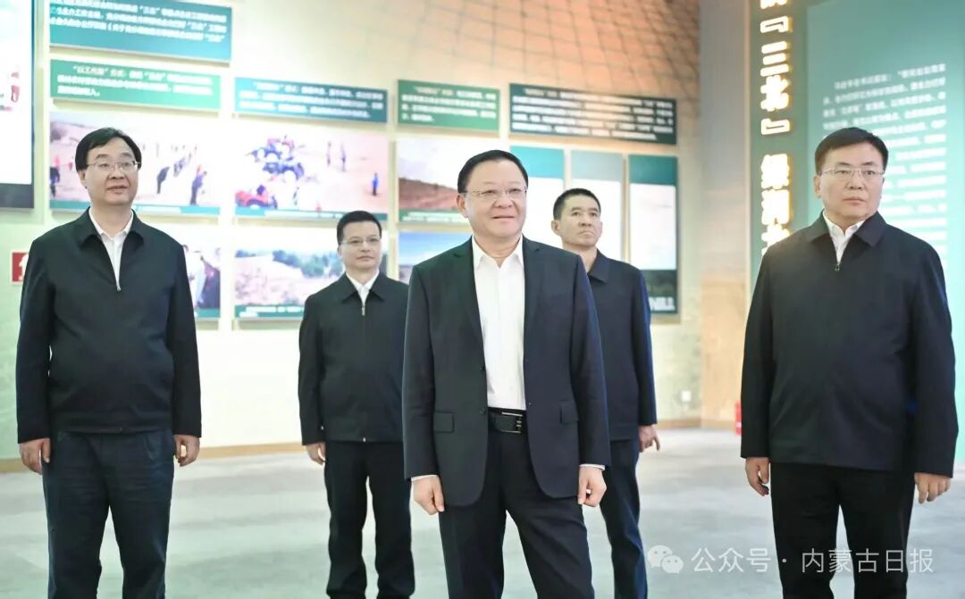 10月7日,自治區(qū)黨委書(shū)記、人大常委會(huì)黨組書(shū)記王偉中在內(nèi)蒙古展覽館參觀“綠色長(zhǎng)城 生態(tài)奇跡——內(nèi)蒙古防沙治沙和‘三北’工程攻堅(jiān)戰(zhàn)”主題展。草原云·內(nèi)蒙古新聞網(wǎng)記者馬建兵 攝