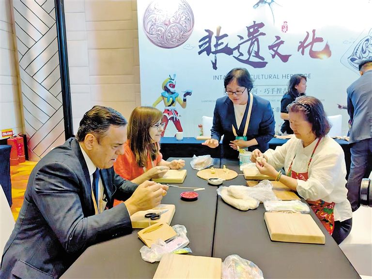外賓在第五屆中蒙博覽會2025年國家向北開放重要橋頭堡智庫論壇非遺文化展區(qū)體驗。 草原云·內(nèi)蒙古新聞網(wǎng)記者 李永桃 攝