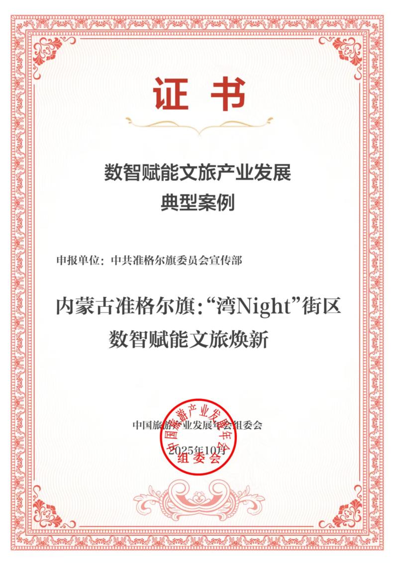 準格爾旗“‘灣Night’街區(qū)數(shù)智賦能文旅煥新”案例成功入選2025數(shù)智賦能文旅產(chǎn)業(yè)發(fā)展典型案例。