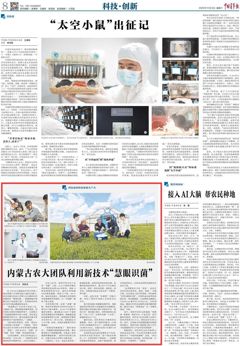 2025年11月5日,《中國(guó)青年報(bào)》第8版刊發(fā)題為《內(nèi)蒙古農(nóng)大團(tuán)隊(duì)利用新技術(shù)“慧眼識(shí)菌”》的文章,報(bào)道了在10月28日福建泉州舉行的第三屆全國(guó)博士后創(chuàng)新創(chuàng)業(yè)大賽總決賽上,來(lái)自內(nèi)蒙古農(nóng)業(yè)大學(xué)博士后馬騰團(tuán)隊(duì)的參賽項(xiàng)目“慧眼識(shí)菌——數(shù)據(jù)賦能中國(guó)菌邁向產(chǎn)業(yè)強(qiáng)國(guó)之路”,在創(chuàng)新組的農(nóng)業(yè)與現(xiàn)代食品賽道獲得金獎(jiǎng)。