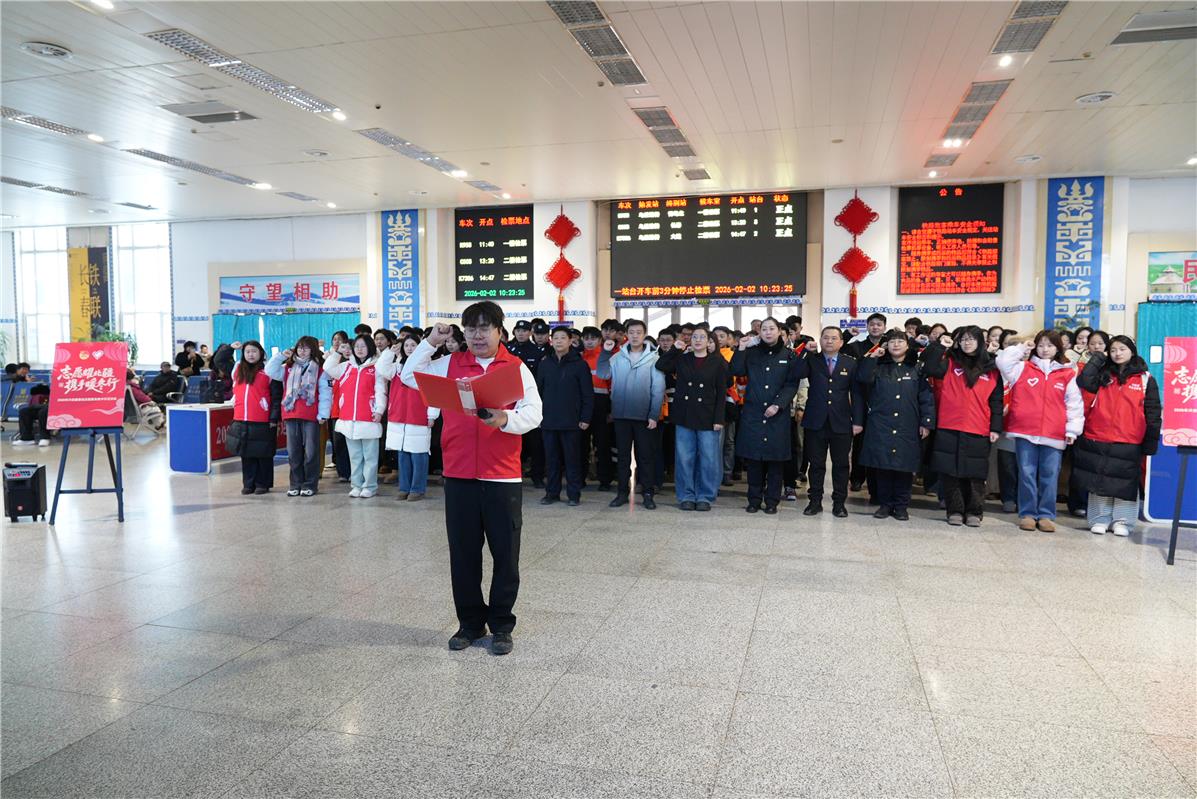“阿姨您慢點(diǎn),檢票口在二樓,行李我來幫您拎?!?9歲的杜鐵毅快步上前,穩(wěn)穩(wěn)接過老年旅客手中沉甸甸的編織袋。連日值守讓他的聲音帶著一絲忙碌后的沙啞,眼里的熱忱卻絲毫未減。作為興安盟向陽環(huán)保青年志愿者協(xié)會(huì)會(huì)長,這個(gè)春節(jié),他和志愿者們幾乎天天“泡”在車站,從進(jìn)站引導(dǎo)、行李搬運(yùn)到車次咨詢、換乘指引,用周到細(xì)致的服務(wù),為奔波的歸途人送上新春里最真切的暖意。