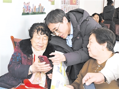 教老年人使用智能手機APP。(固陽縣委組織部供圖)