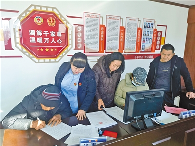 臨河區(qū)綜治中心特邀政協(xié)委員調解員化解糾紛。 王震 攝