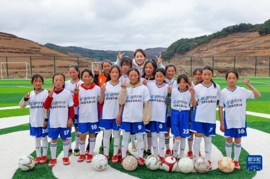 四川省涼山州昭覺縣瓦吾小學(xué)坐落于海拔約2700米的大涼山上,因為地理位置偏僻、一年四季云霧繚繞而得名“云端小學(xué)”。校長曲比史古2018年組建女足球隊,希望通過足球讓這些大山里的女孩子收獲快樂,也獲得更多人生可能性。過去幾年,孩子們都是在一片“手工自制”的泥地球場上訓(xùn)練,經(jīng)常受傷。得知瓦吾小學(xué)的情況后,中國足協(xié)、支付寶以及女足國腳們決定一起為這支校園女足隊捐贈一座“玫瑰夢想球場”。2022年底,全國第二座中國女足主題球場——“玫瑰夢想球場”在大涼山上落成。